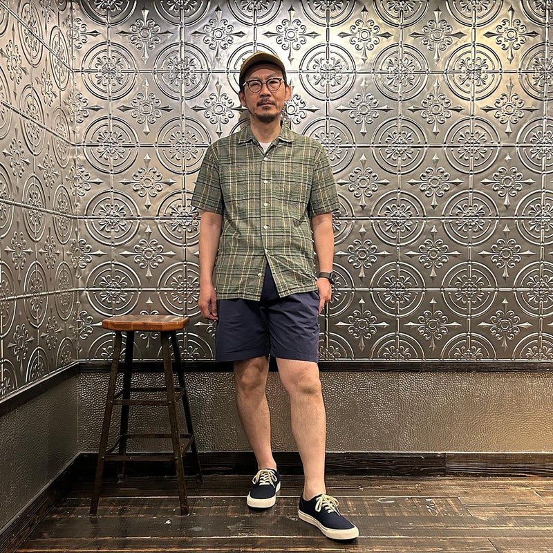 FELCO(フェルコ)のGROUND KEEPER SHORT。サラッとした肌触りのコットン素材を使用したショーツ。ウエストはストレスフリーのゴム仕様。ドローコードも装備しておりサイズ調節が可能。腰下の左右にハンドポケット。バックには片玉縁仕上げのポケットを左右に装備。ゆったりとしたシルエットでショートレングスのバランスの良いシルエット。スタイルを選ばない使い勝手の良い1本。
