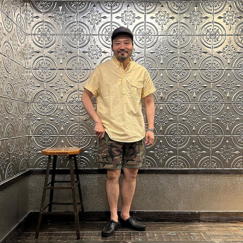 170センチ68キロの私の体型でサイズはMでゆったりとした着用感です。23春夏で展開されたモデル同様脱ぎ着し易いゆったりとしたサイズ感。素材は春夏らしい軽めのオックスフォード生地を使用。洗いかかっていることで大きな縮みもなく着続けられるのは嬉しいポイント。流行り廃りのないシンプルなプルオーバーボタンシャツ。様々なシーンや幅広いスタイリングにも適応できるほど着回しの良い1着です。