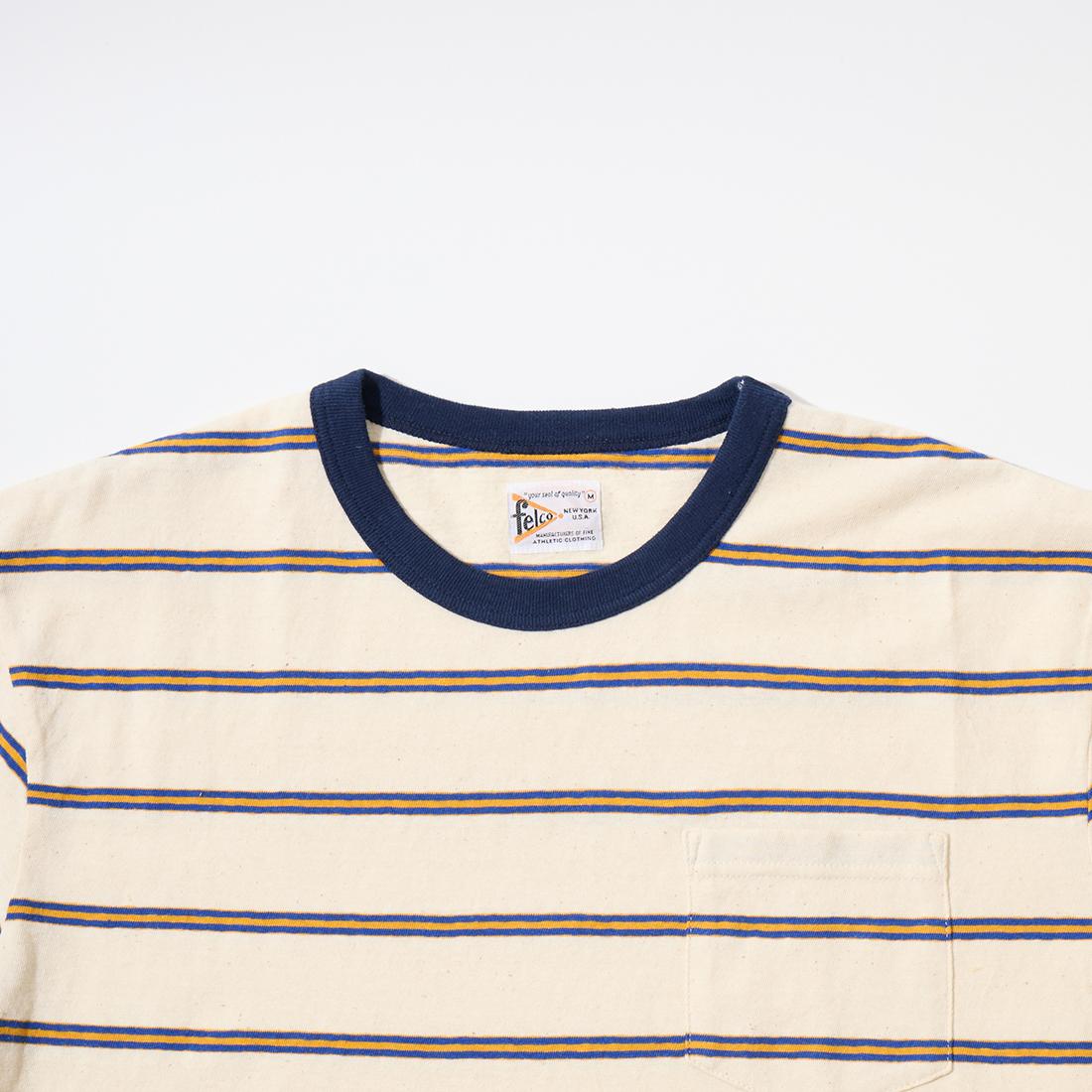 他の画像を見る メンズ クルーネック ポケット ストライプ Tシャツ 日本製 FELCO (フェルコ) S/S CREW POCKET TEE CRESER STRIPE - 103NATURAL-BLUE&MUSTARD ¥ 7,920 税込 お気に入りに登録する