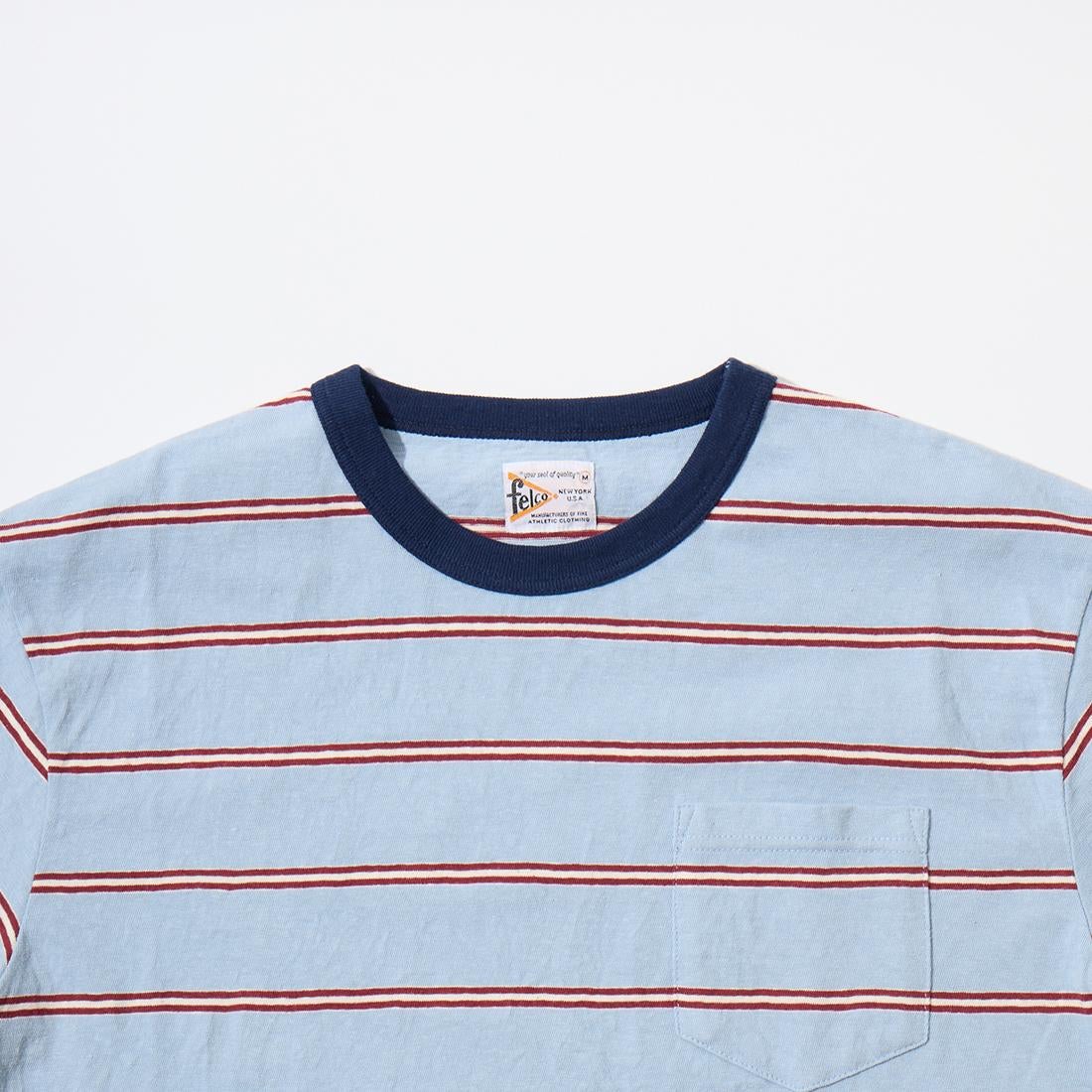 他の画像を見る メンズ クルーネック ポケット ストライプ Tシャツ 日本製 FELCO (フェルコ) S/S CREW POCKET TEE CRESER STRIPE - 159L.BLUE-WHITE&BURGUNDY ¥ 7,920 税込 お気に入りに登録する