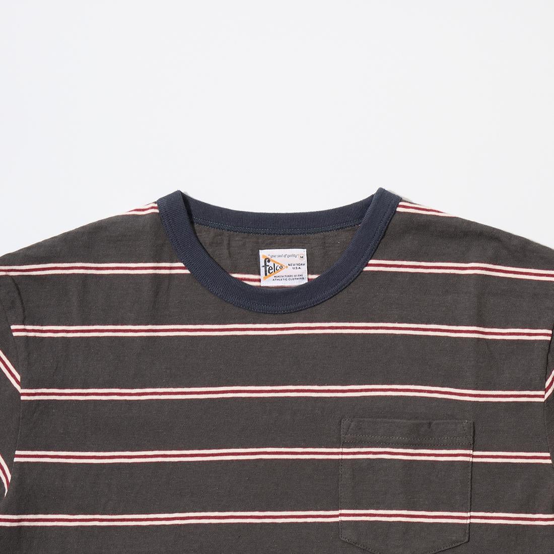 他の画像を見る メンズ クルーネック ポケット ストライプ Tシャツ 日本製 FELCO (フェルコ) S/S CREW POCKET TEE CRESER STRIPE - 192DEEP BLACK-WHITE&BURGUNDY ¥ 7,920 税込 お気に入りに登録する