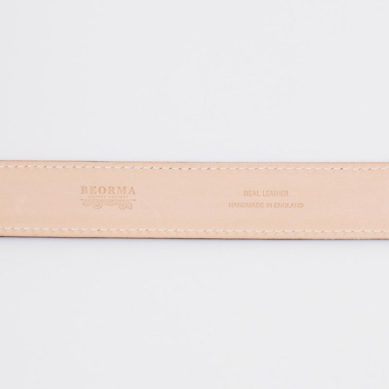 BEORMA LEATHER COMPANY(ベオーマレザーカンパニー)のCALF 30mm DRESS BELT。表材に上質なフランス産カーフ、裏材は無染色のナチュラルレザーを使用したベルト。30mmでドレスパンツとの相性の良いベルト幅。艶やかな光沢を放つ真鍮ニッケルコーティングのバックルを採用。ベオーマがリリースするエレガントなドレスベルト。
