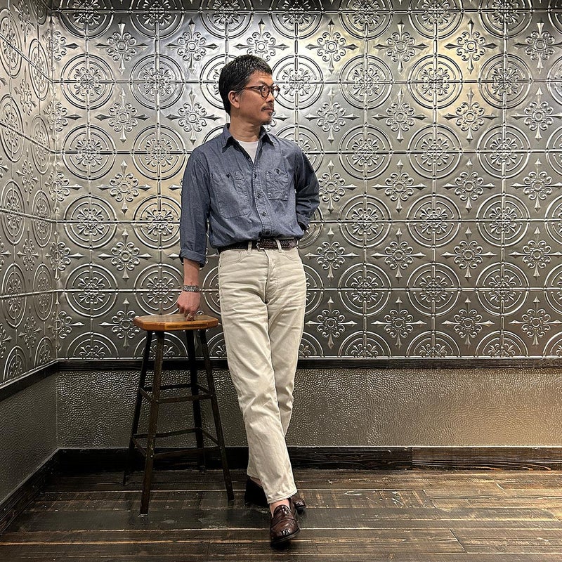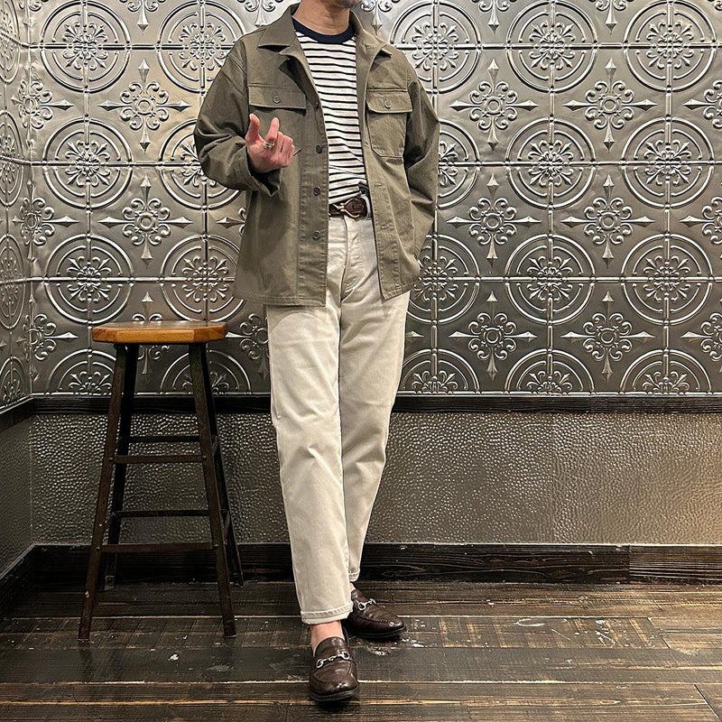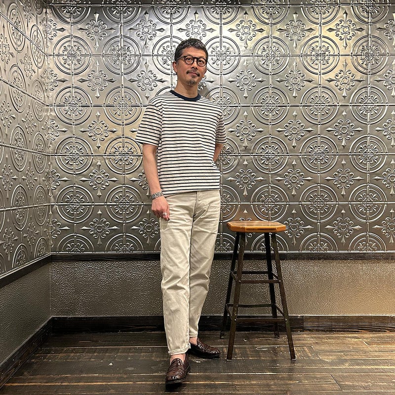 生地の特性に合ったデザイン、絶妙なコントラストステッチ、各アイテムの特性に合うソーイングマシーンを使った様々な縫製、手作業による洗いや乾燥といった仕上げ、それら工程の一つ一つに時間と手間をかけることでアイテムに「深み」を出しています。 全てのアイテムのフィッティングは体に自然にフィットするように計算されたシルエット。着込んでいく事によってその人の体型にフィットしてく過程も「ナチュラルフィット」たる所以です。これこそがブランドコンセプトに掲げている「ナチュラルフィット」です。