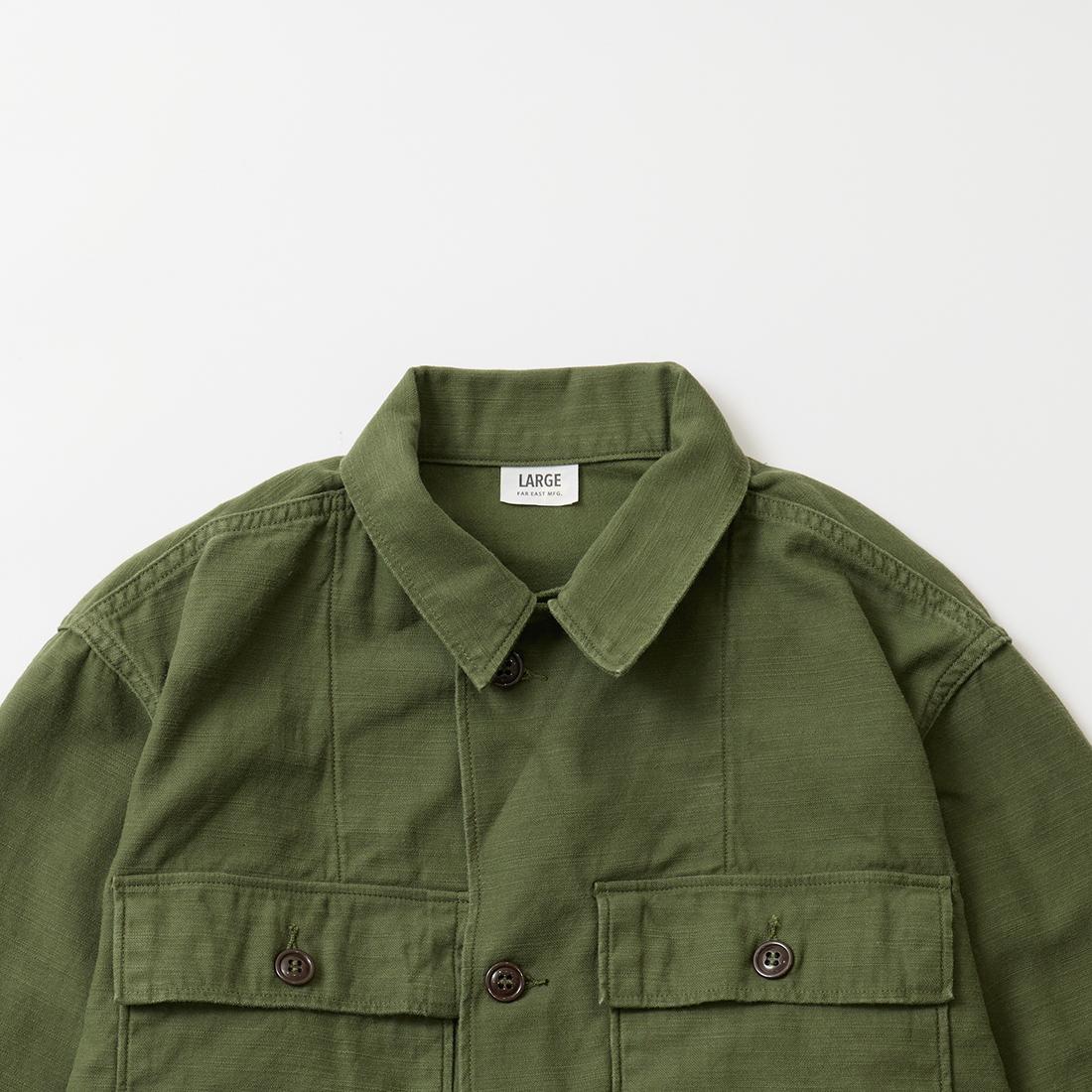 他の画像を見る ユーティリティシャツ メンズ 日本製 FAR EAST MANUFACTURING (ファー イースト マニュファクチャリング) UTILITY SHIRT BACK SATIN - OLIVE 販売価格 ¥ 27,500 税込 お気に入りに登録する