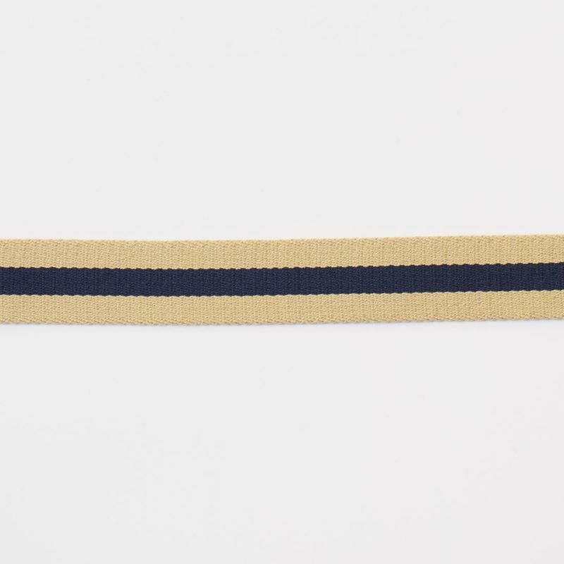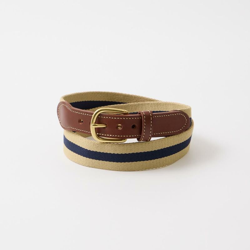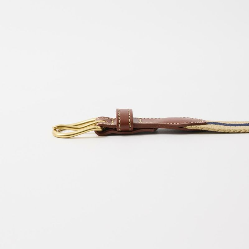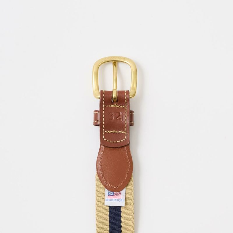 LEATHERMAN BELT (レザーマンベルト) 1.25 STRIPED COTTON SURCINGLE W/YELLOW STITCHED TABS BRASS HARNESS BUCKLE - KHAKI_NAVY