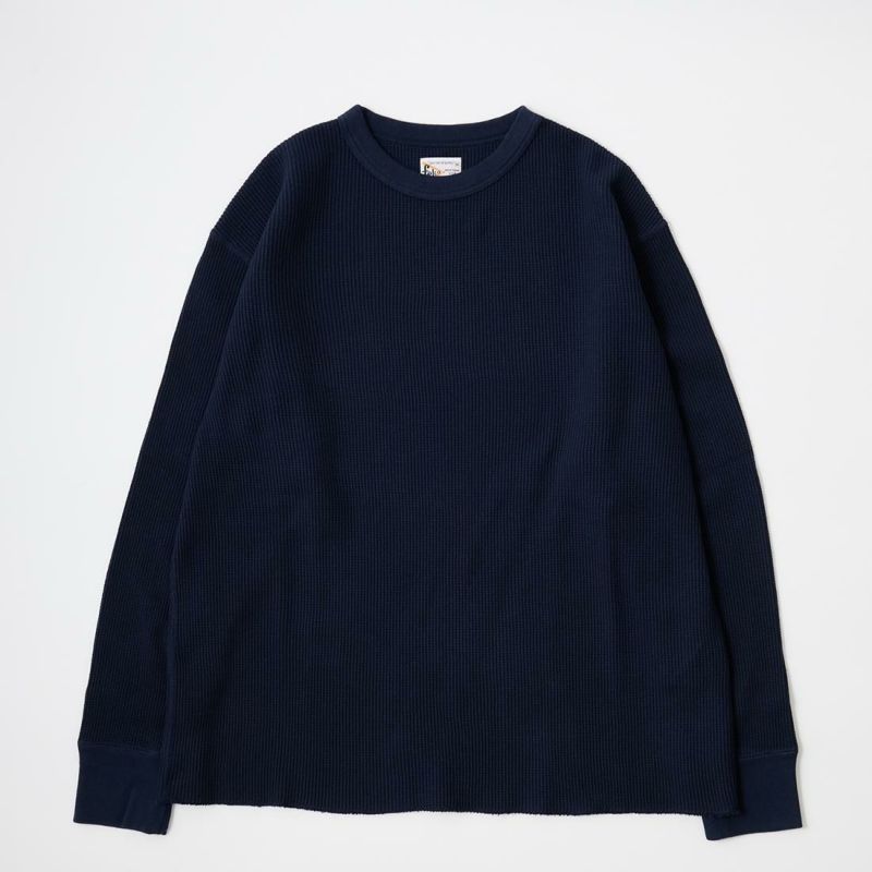 FELCO(フェルコ)のL/S THERMAL CREW MIDDLE WEIGHT。シンプルなデザインで使い勝手の良いサーマル素材のクルーネックの長袖Tシャツ。しっかりとしたバインダーネックの襟元。袖口はリブ仕上げ。程よい厚みで柔らかく伸縮性のあるコットン100%のサーマル素材を使用。ボックスシルエットで程良いゆとりがあり、インナーとしては勿論ですが単体でも活躍してくれる一枚。