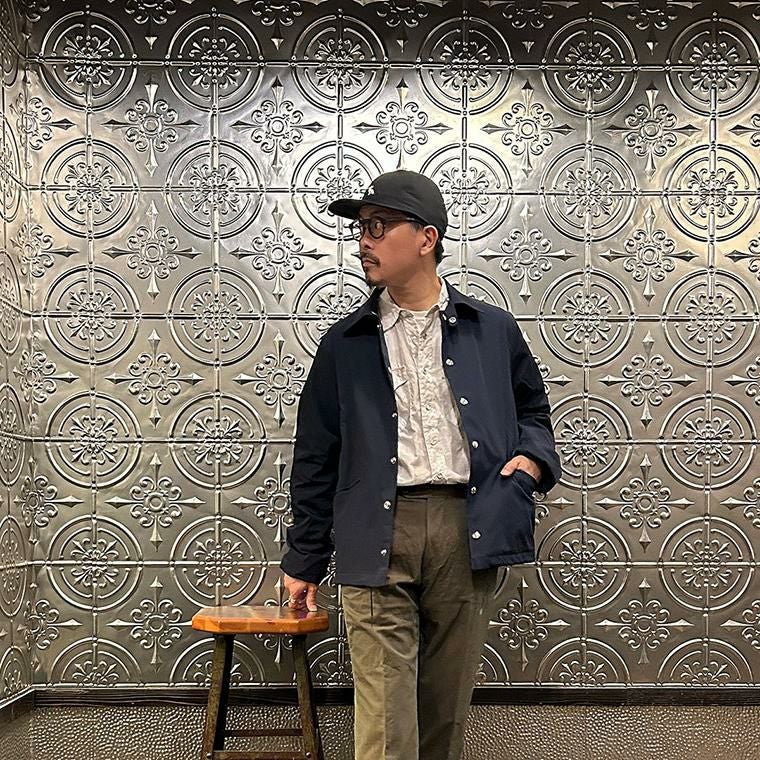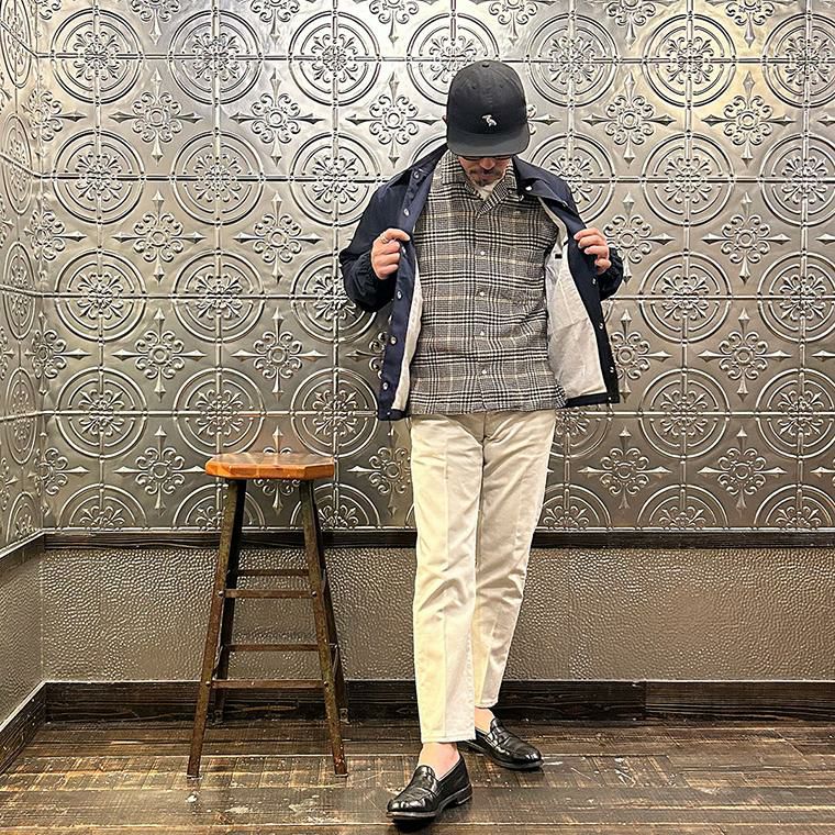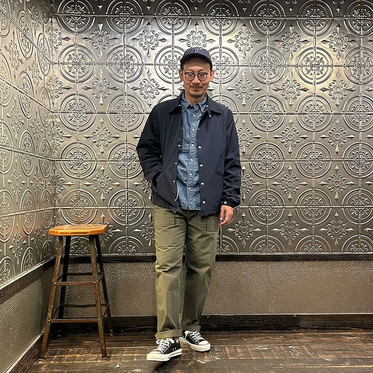 170センチ68キロやや肩幅広めの私の体型でサイズ選びは38サイズで丁度良い着用感です。この23秋冬シーズンから以前のフィットとは違ってゆったりとしたつくりのクラシックフィット仕様に変更。なので、38サイズでもインナーに地厚めのパーカーやスウェットを着てもゆったりとした着用感で羽織れます。アメカジ、スポーツスタイル好きな方にはオススメしたくなるアイテム。中にガッツリ着込めば冬でも着れますし、シャツやカットソーぐらいの軽めのアイテムを着て羽織るぐらいでしたら涼しい時期でも着れますからね。そういう意味では長いシーズン重宝して頂ける1着ですね。