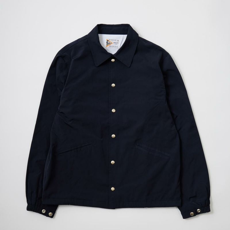 FELCO(フェルコ)のSET IN SLEEVE COACH JACKET SNAP BUTTON FRONT W/FLANNEL LINING CLASSIC FIT。撥水性を持つウォータープルーフナイロンを使用したスナップフロントのコーチジャケット。襟は大きめで風防のチンストラップが付属。ポケットはフロントに2つと、内ポケット2つ、そして背面右側にはデザインとしてもポイントになるポケットを配置。裏地にはコットンフランネルのライニングが付き、袖口はスナップでサイズ調整が可能なゴム仕様。こちらは従来のモデルよりも全体的にゆとりを持たせたクラシックフィット。ストレスのない着用感で重ね着もし易いコーチジャケットに仕上がっています。