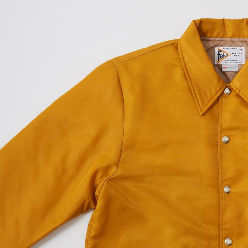 FELCO(フェルコ)のCLASSIC FIT OXFORD NYLON SATIN JACKET w/QUILT THISULATE LINING。フェイスにナイロンを使用したスナップフロントのコーチジャケット。アメリカンな雰囲気の大きめの襟。ポケットはフロントに2つと、内ポケットが2つ。袖口はスナップでサイズ調整が可能なゴム仕様。内側はシンサレートのキルトライニングとなっており保温性も高い1着。フィットは全体的にゆとりを持たせたクラシックフィット。ストレスのない着用感で重ね着もし易いコーチジャケットに仕上がっています。