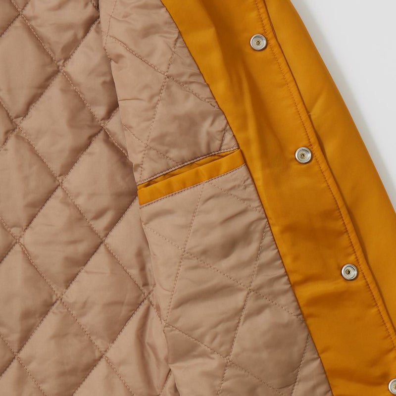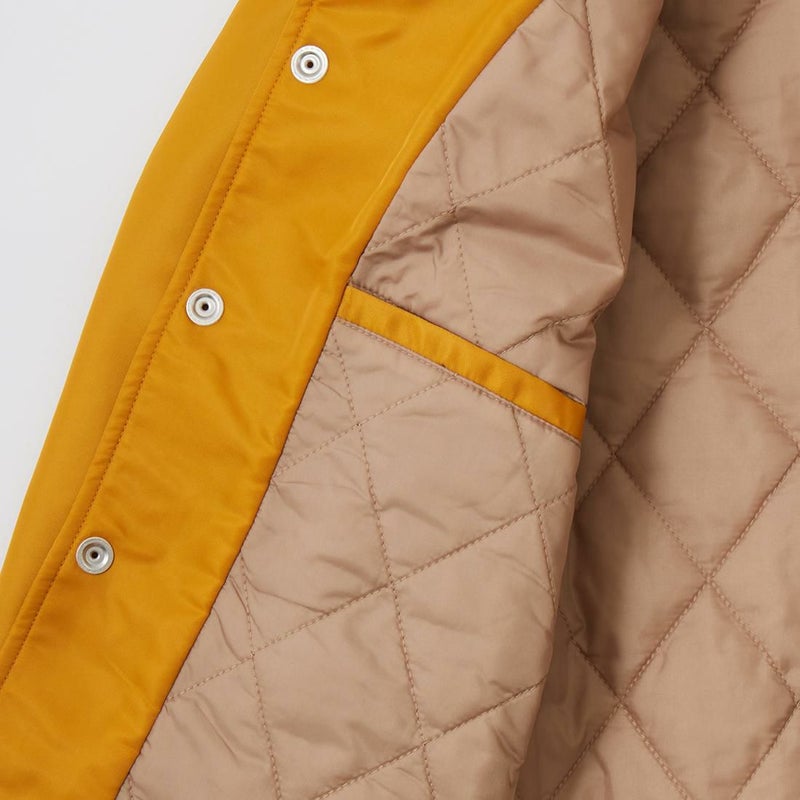 FELCO (フェルコ) CLASSIC FIT OXFORD NYLON SATIN JACKET w/QUILT THISULATE LINING - DK MUSTARD_SLIVER SNAP_BEIGE LINING