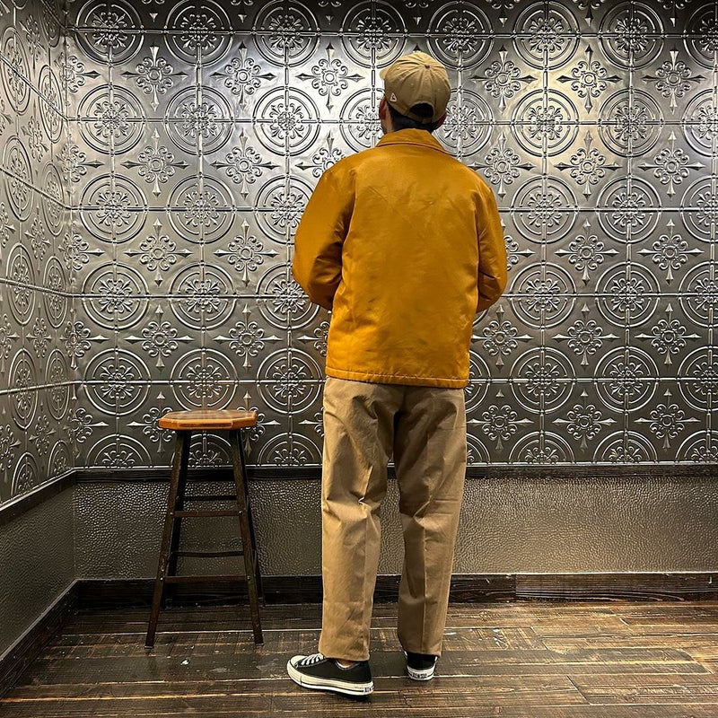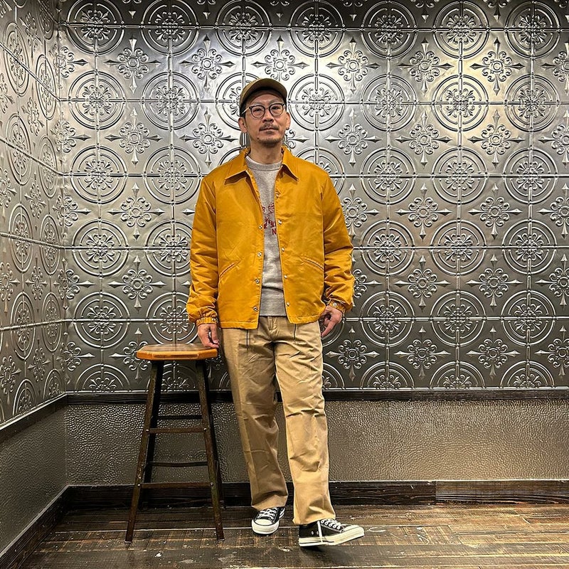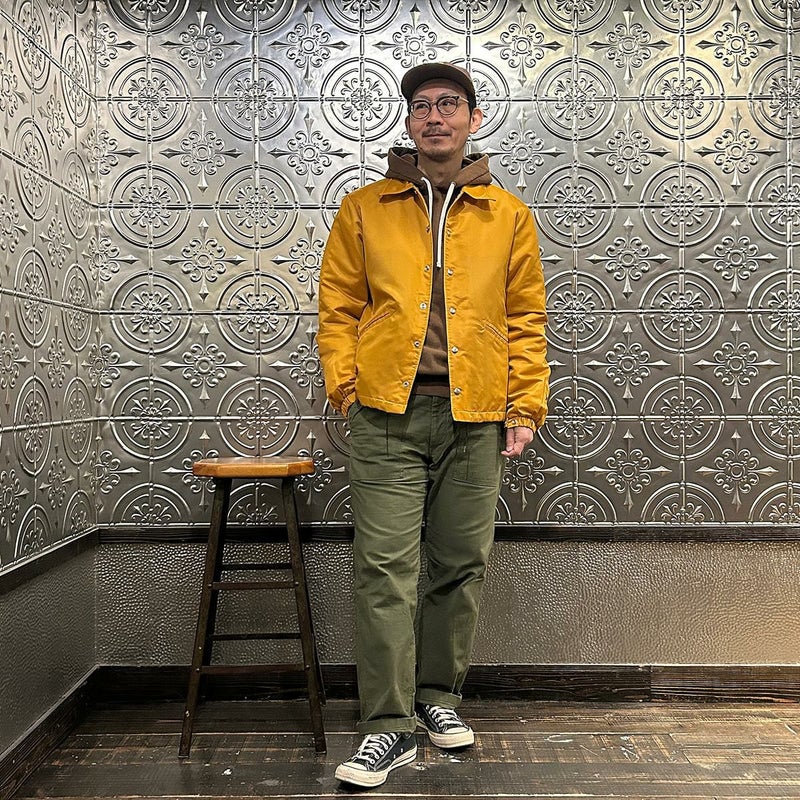 170センチ68キロの私の体型でサイズ選びは38サイズで個人的には丁度良い着用感です。クラシックフィット仕様のつくりから全体的にゆったりとしたサイズ感。なので、地厚めのパーカー、スウェットを中に着ても38サイズであればストレスなく羽織れます。アメカジ、スポーツスタイル好きな方にはオススメしたいアイテム。裏地は保温性に優れた中綿入り。暑がりの方であれば軽めのシャツやカットソーぐらいでも十分かもしれませんね。真冬の時期には大活躍間違いない1着です。
