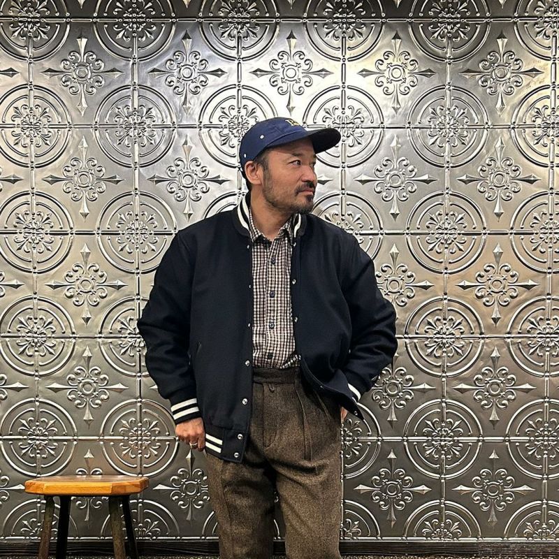 メンズ ウールメルトン ショールカラー バーシティジャケット キルティングライニング