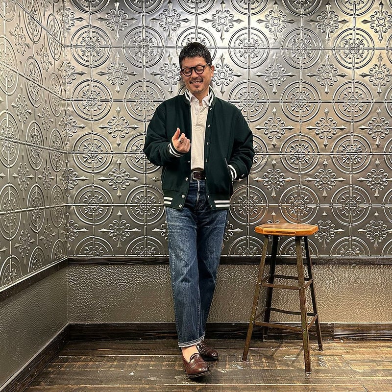 メンズ ウールメルトン ショールカラー バーシティジャケット キルティングライニング