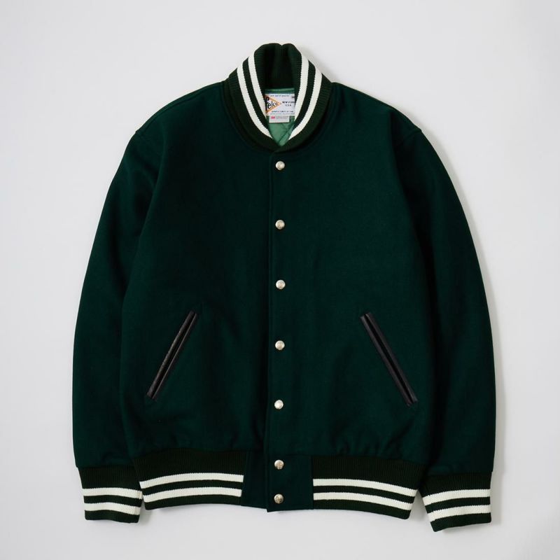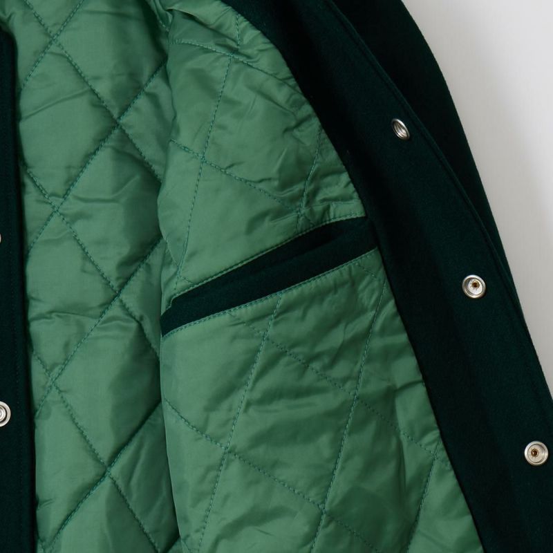 5. FELCO (フェルコ) SHAWL COLLAR VARSITY JACKET w/QUILT LINING ALL MELTON - DK GREEN