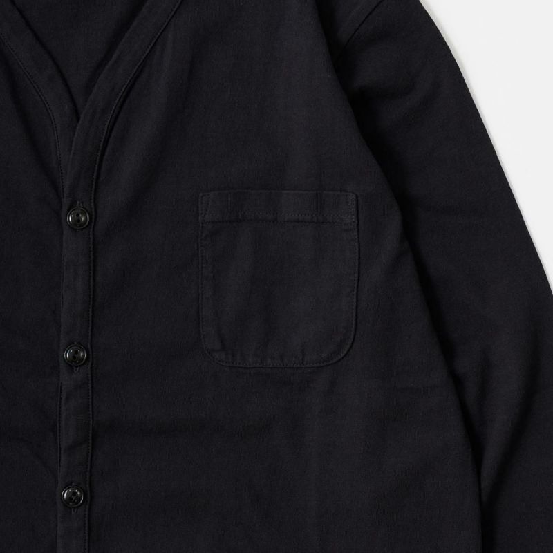 7. FELCO (フェルコ) L/S BINDER V NECK CARDIGAN W/POCKET 7oz 16SINGLE RUFFY JERSEY - BLACK