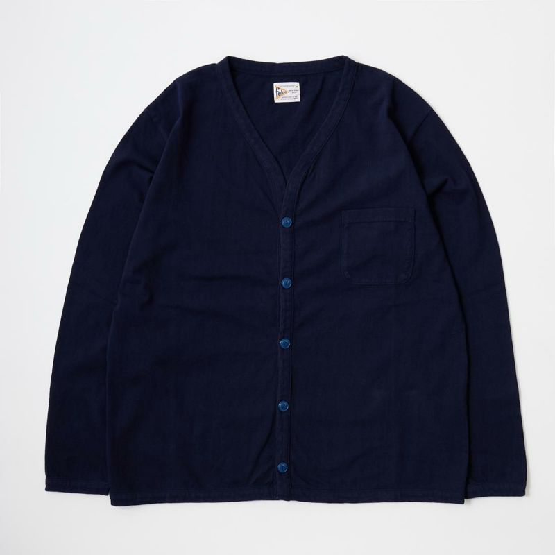 5. FELCO (フェルコ) L/S BINDER V NECK CARDIGAN W/POCKET 7oz 16SINGLE RUFFY JERSEY - ITALIAN NAVY