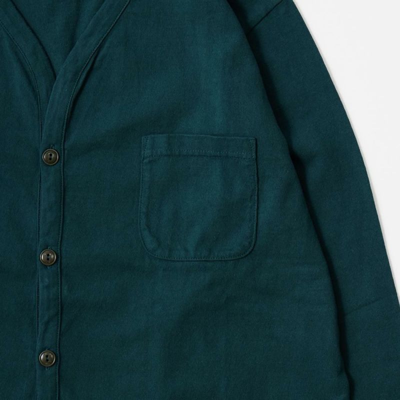 FELCO (フェルコ) L/S BINDER V NECK CARDIGAN W/POCKET 7oz 16SINGLE RUFFY JERSEY - DK GREEN
