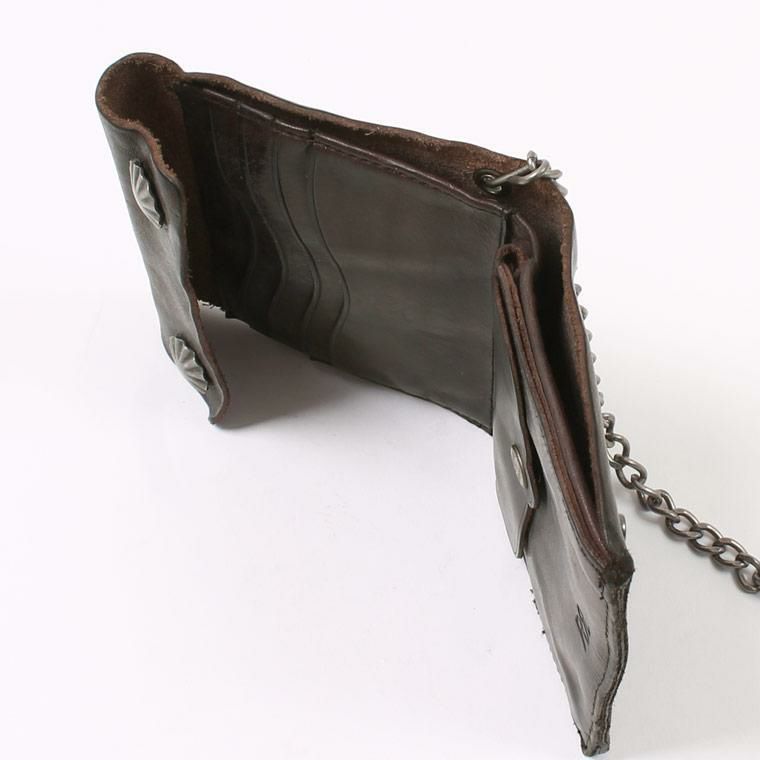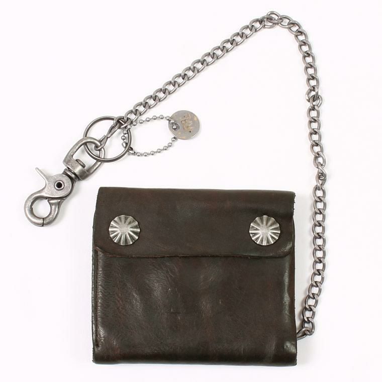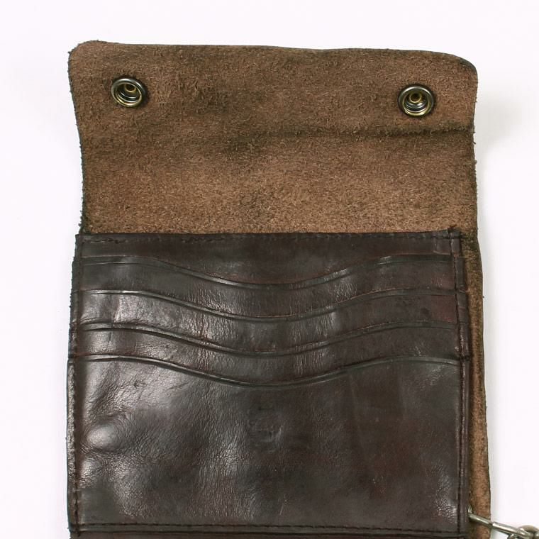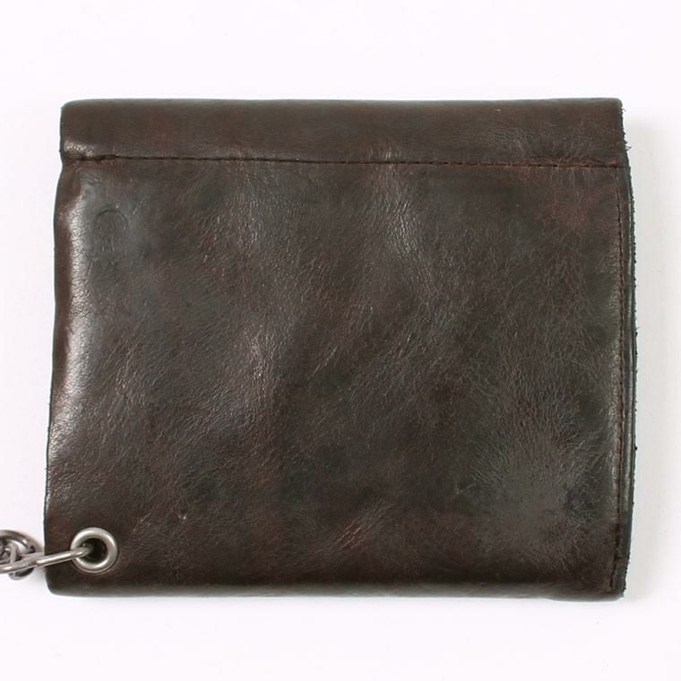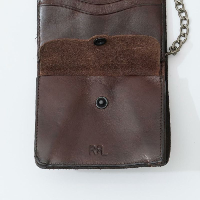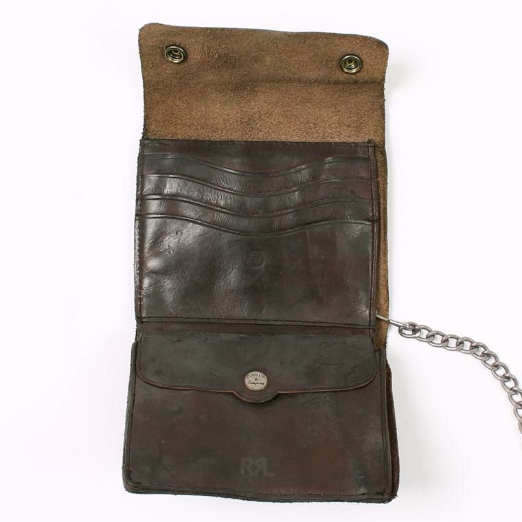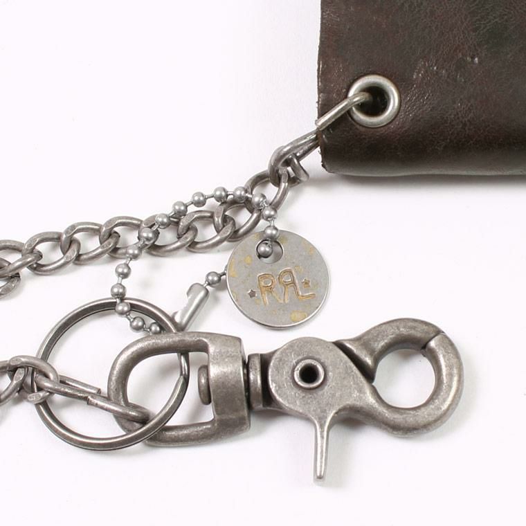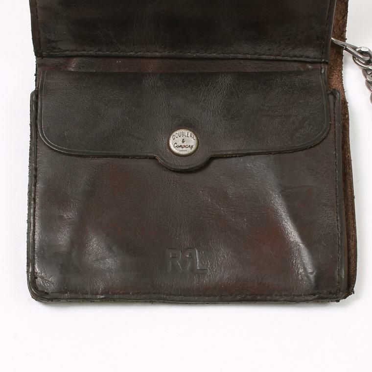 Double RL(ダブル アール エル)のCONCHA RYDER WALLET SMALL LEATHER。ユーズド加工の施されたレザーを使用したチェーン付きウォレット。カードスロット4つ、スナップ付きコインポケット1つを装備しているスタンダードで使い勝手の良いウォレット。札入れ部分には本藍染めを施したコットンキャンバスの裏地を使用。アンティーク調のチェーンを使用するなどDouble RL(ダブル アール エル)の拘りが詰まった雰囲気抜群のウォレットです。