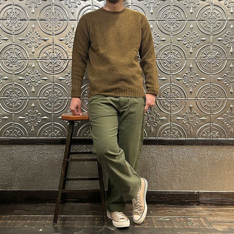 確かなクオリティとインポートブランドながらもコストパフォーマンスに優れたアイテムを数多くリリースするHARLEY OF SCOTLAND(ハーレーオブスコットランド)。縫い目のない一つ凪で作られるシームレス製法が特徴。ウールの温かみが感じられるミドルゲージの編地。こちらは着丈、袖丈を2.5センチ程度長く変更してもらった別注モデルになります。