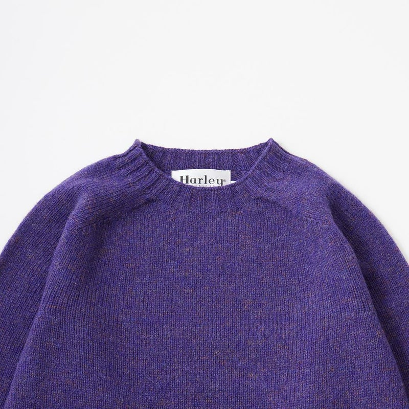 5. HARLEY OF SCOTLAND (ハーレーオブスコットランド) PURE NEW WOOL SADDLE SHOULDER CREW NECK SWEATER - IRIS