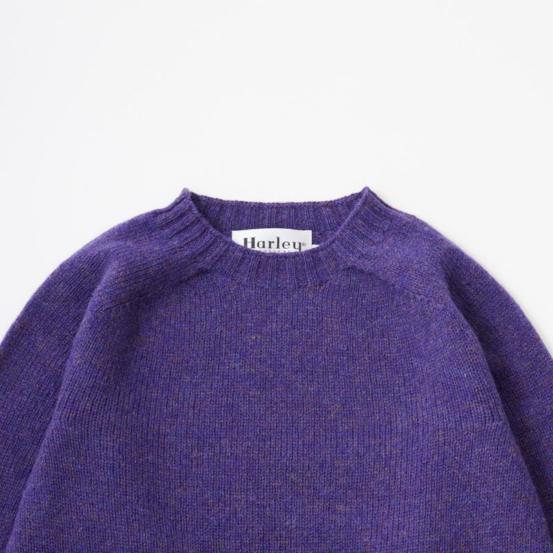 5. HARLEY OF SCOTLAND (ハーレーオブスコットランド) PURE NEW WOOL SADDLE SHOULDER CREW NECK SWEATER - ROYAL VIOLET