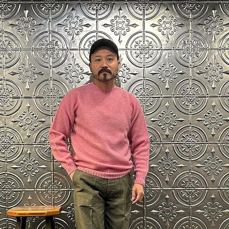 5. HARLEY OF SCOTLAND (ハーレーオブスコットランド) PURE NEW WOOL SADDLE SHOULDER CREW NECK SWEATER - SAKURA