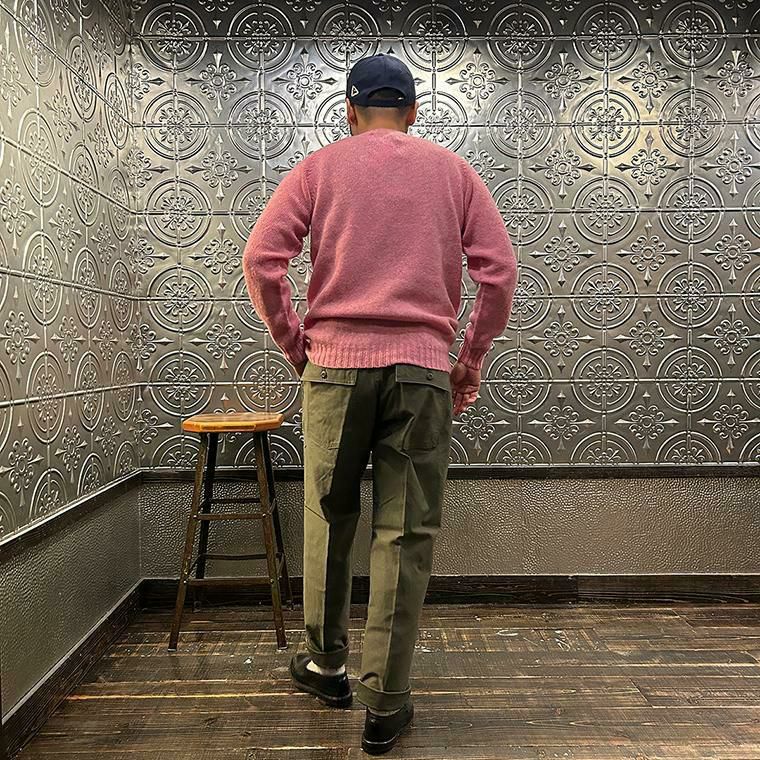 定番展開ブランドとなっているスコットランドのハーレーが今季も入荷してきました!シンプルでスタイルを選ばない使い勝手の良いクルーネックのニット。シンプルなアイテムですがストレスを感じないシームレス製法など拘りの感じられる1枚に仕上がっています。柔らかいウール素材を使用しているので着用感も抜群。従来のモノより着丈を気持ち長めに変更した別注モデルになっているのでパンツとのバランスが取り易くなっているのでより使い勝手の良い1枚になっているかと思います。サイズはインナーにシャツ1枚程度で42でややタイトなサイズ感になり44で程良くゆとりのあるニットアイテムらしいサイズ感になります。