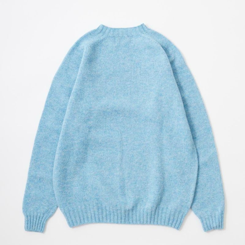 HARLEY OF SCOTLAND (ハーレーオブスコットランド) PURE NEW WOOL SADDLE SHOULDER CREW NECK SWEATER - LOCH BLUE