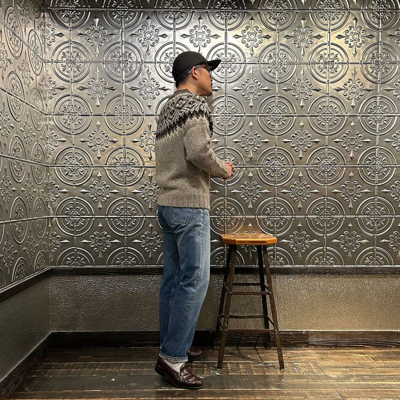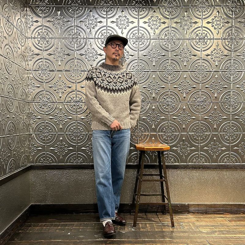 HARLEY OF SCOTLAND(ハーレーオブスコットランド)のFAIRISLE YOKE CREW SWEATER 100%WOOL。肩部分にフェアアイル柄が入ったハイネック(モックネック風)セーター。多色糸で柄を表現。シンプルになりがちな冬のコーディネートのアクセントに最適。縫い目の無い(シームレス)製法で仕上げられているので着心地も抜群。ミドルゲージで保温力と着易さ、着まわしの良さが備わったニット。