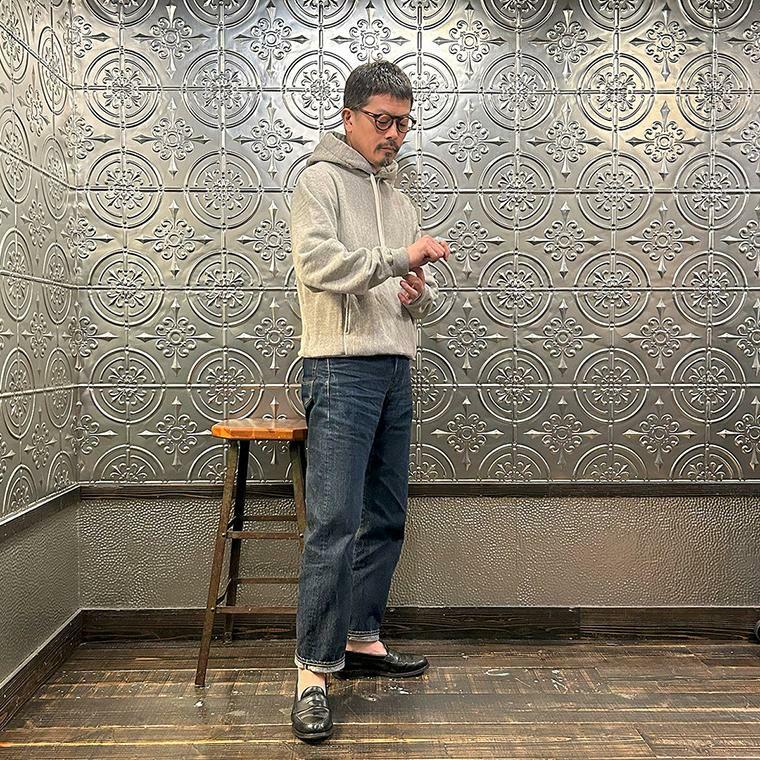 170センチ68キロやや肩幅広めの私の体型でMサイズでゆったりとしたサイズ感です。クラシックフィットという作りからこのサイズでも十分ゆったりとした着用感で着れます。ただオーバーサイズよりのかなりゆったりとした着用感がお好きな方でしたらLサイズのほうがオススメ。コシのある目の詰まった16オンスのアメリカらしい生地感。それに柔らかくて着心地の良いフレンチテリー素材を使用したヴィンテージ感漂う仕上がり。使い勝手&着回しの良いシンプルデザイン。冬時期こそ持って置きたくなる1着ですね。