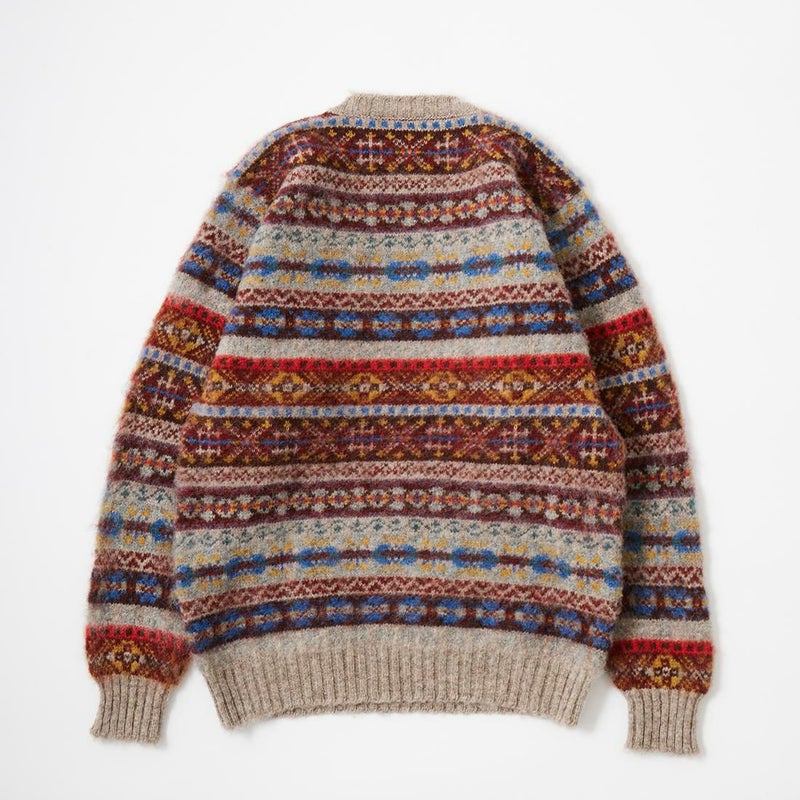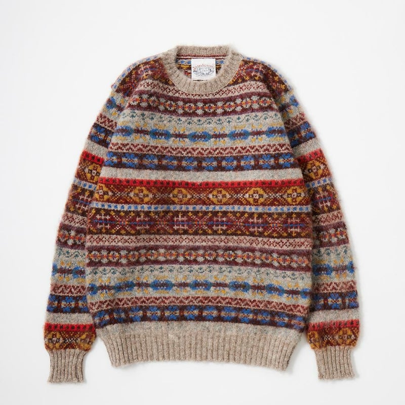 ブラッシュド フェアアイル柄 クルーネック ニット シャギードッグセーター スコットランド製