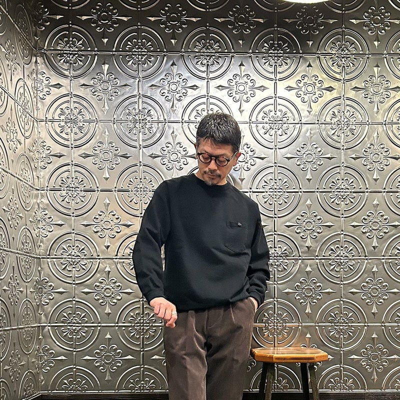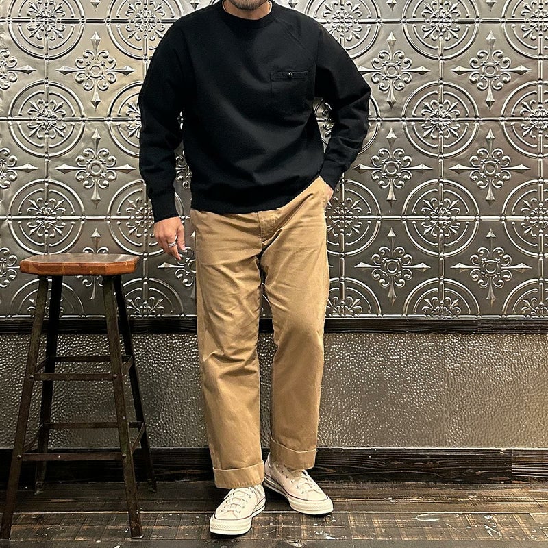 FELCO (フェルコ) 16oz INLAY ALL SEAM RAGLAN V GUSSET CREW W/CHEST SNAP POCKET - AMERICAN NAVY