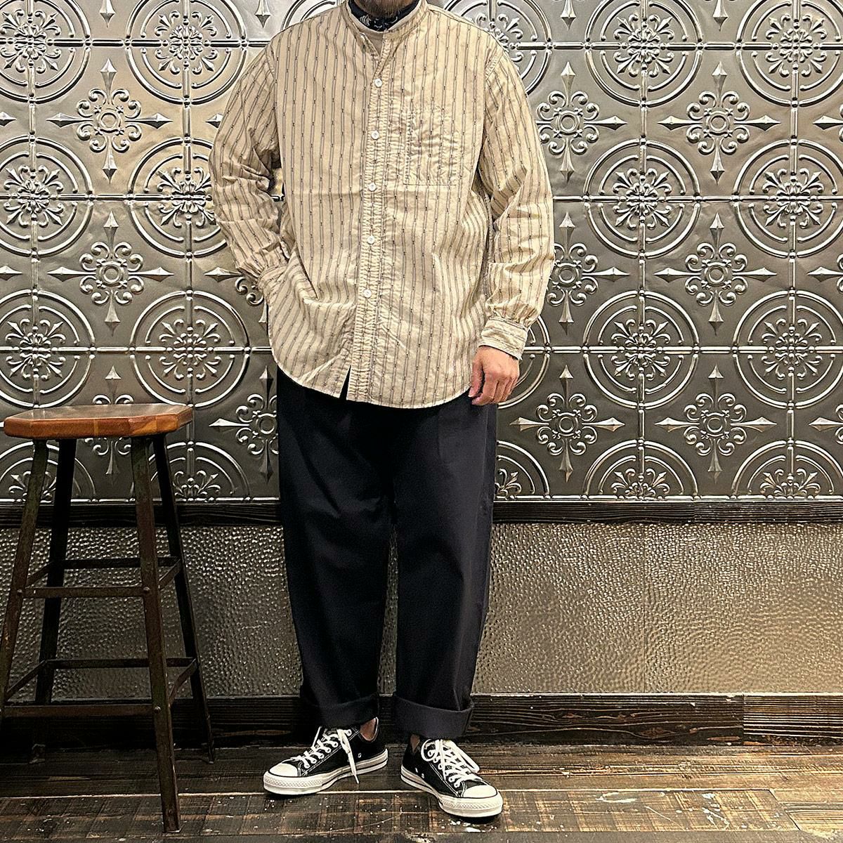 他の画像を見る バンドカラーシャツ MV ストライプ シーチング 日本製 【SALE】POST OVERALLS (ポストオーバーオールズ) BAND COLLAR SHIRT MV STRIPE SHIRTING - NATURAL 通常販売価格 ¥ 33,000 の所 セール価格 ¥ 22,000 税込 販売開始前です。 販売期間 2026/01/10 19:00 〜 2026/01/18 23:59 お気に入りに登録する