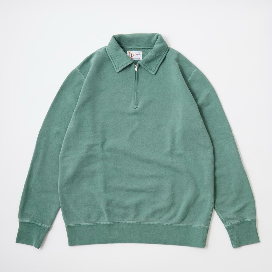 他の画像を見る ピグメント加工 メンズ 10オンス ライトウェイト フレンチテリー ハーフジップ スウェット 無地 日本製 【SALE】FELCO (フェルコ) 10oz LT WEIGHT FRENCH TERRY L/S HALF ZIP COLLARED SWEATSHIRT - PG GREEN 通常販売価格 ¥ 17,600 の所 セール価格 ¥ 15,950 税込 販売開始前です。 販売期間 2026/01/10 19:00 〜 2026/01/18 23:59 お気に入りに登録する