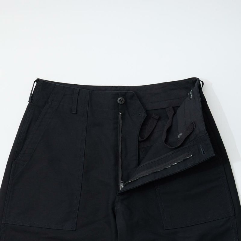 ENGINEERED GARMENTS(エンジニアドガーメンツ)のFATIGUE PANT COTTON DOUBLE CLOTH。コットンダブルクロスを使用したファティーグパンツ。フロントの大きなパッチポケットが特徴的。左ポケット部分にはジップポケットも装備。腰回りはゆったり、裾に向かってテーパードの効いたシルエット。様々なスタイリングに対応してくれる使い勝手の良いシルエット。素材はコットンダブルクロス生地。細番手のコットンを縦糸と横糸の太さを変えて高密度に織り上げることで、さらっとした滑らかさにハリとコシを持ち合わせた素材。