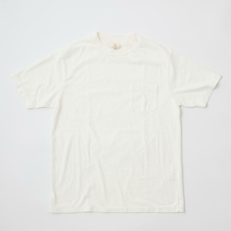 アメリカ発「FELCO(フェルコ)」のS/S HI CREW TEE USA COTTON。クラシックサーフをテーマに掲げるコレクションラインからのリリース。太めのネックリブで首元の詰まった、ハイクルーが特徴的なポケットTです。やや短めの着丈、身幅の広めのボックスシルエットになっています。サラッとした肌触りのテキサスコットンを使用しており、薄手で通気性も良くインナーとしても最適です。