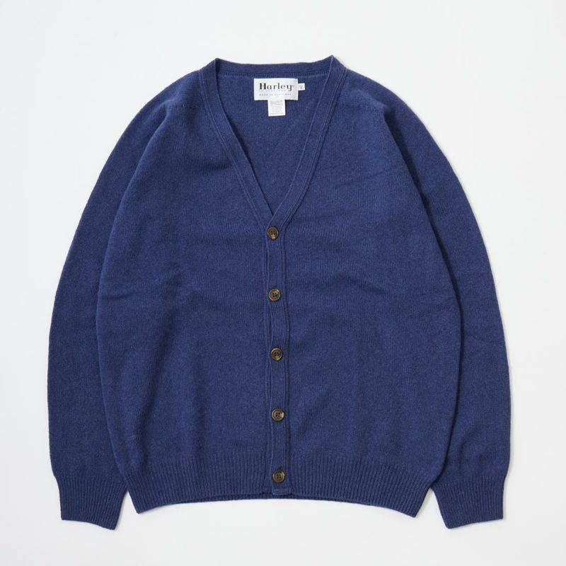 確かなクオリティとインポートブランドながらもコストパフォーマンスに優れたアイテムを多く輩出するHARLEY OF SCOTLAND(ハーレーオブスコットランド)の V CARDIGAN 90% MERINO WOOL 10% CASHMERE。シンプルなデザインのVネックカーディガン。サイドシームの無いシームレス製法が特徴的なディテール。上質なメリノウールにカシミア混紡の糸を使用。この糸を使ってこのプライスは驚きの一枚。イギリスのニットブランドでありがちな裾のリブがキツめのクラシックな仕上がりではなく、裾のリブが緩めでカジュアルに着易いシルエット。