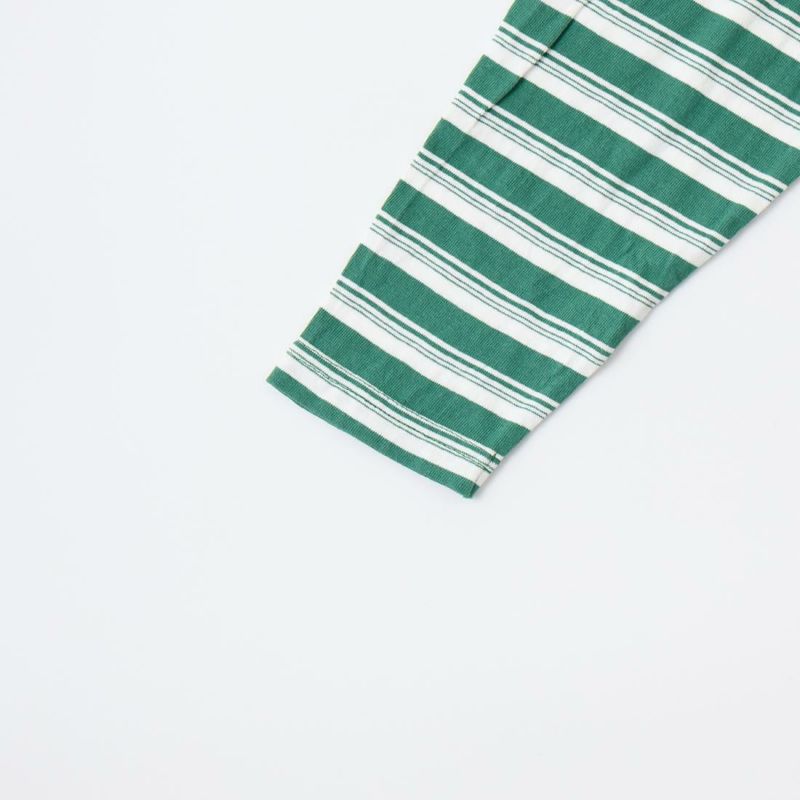 FELCO(フェルコ)のL/S BINDER NECK CREW STRIPE POCKET T AMERICAN DRY JERSEY STRIPE2。ストライプ柄のコットン素材を使用したクルーネックの長袖Tシャツ。しっかりとしたバインダーネックの襟元や胸のポケット、リブなしの袖口が特徴的なディテール。アメリカブランドらしいボックスシルエットで程良いゆとりがあり、インナーアイテムとしては勿論ですが一枚での着用でもサマになるロンTです。薄すぎず、厚過ぎないアウター、インナーと活躍してくれる丁度良いウエイトのコットン素材。スタライブ柄がスタイリングのアクセントになってくれる1着です。