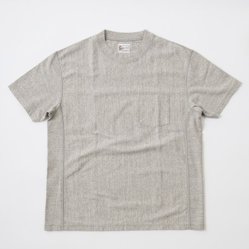 FELCO(フェルコ)のS/S INVERSE WEAVE TEE 7oz 18SINGLE JERSEY。シンプルなデザインで幅広い着こなしに対応してくれるクルーネックの半袖Tシャツ。胸にポケットを配置し、生地を横向きに使用することで縦縮みを軽減し、サイドリブが横縮み防止と動きやすさを実現したインバースウィーブ仕様。アメリカブランドらしいボックスシルエットで程良いゆとりがあり、インナーには勿論一枚でもサマになるロンTです。インバースウィーブと7オンスのタフな生地で、着倒しても型崩れしにくくへこたれない、デイリーに着用して頂ける1枚です。