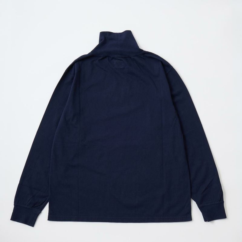 FELCO(フェルコ)のL/S TURTLE NECK POCKET T 7oz 18 SINGLE JERSEY。タートルネックの高さや幅が良い塩梅の雰囲気のある長袖Tシャツ。襟元や胸のポケット、リブ付きの袖口が特徴的なディテール。アメリカブランドらしいボックスシルエットで程良いゆとりがあり、一枚での着用は勿論ですがインナーとしても活躍。7オンスのタフな生地で着倒しても型崩れしにくいデイリーに着用して頂ける1着。