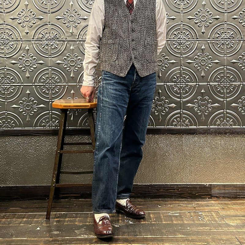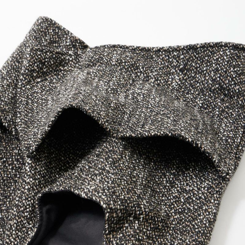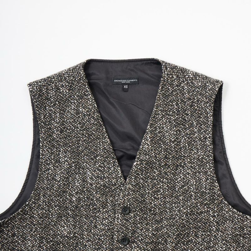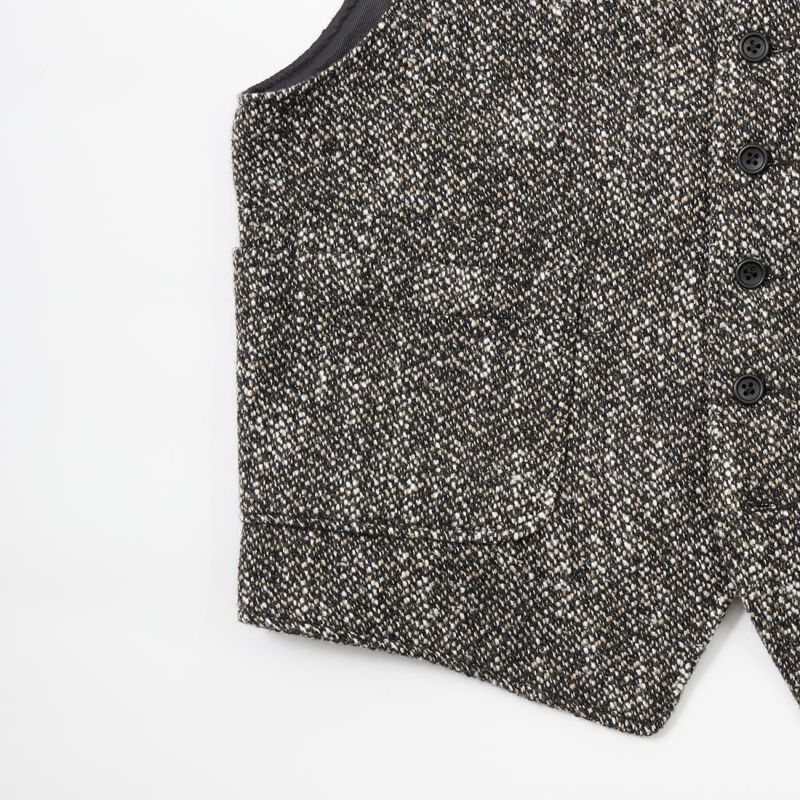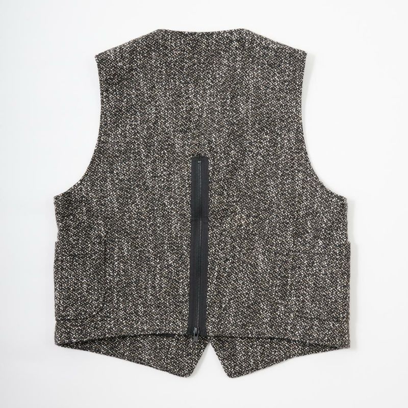 ENGINEERED GARMENTS(エンジニアドガーメンツ)のODD VEST WOOL HOMEPUN。エンジニアドガーメンツの中ではドレッシーな雰囲気のベスト。ボタンフロントで腰部分の左右にパッチポケットを装備したシンプルなデザイン。背面にジップが装備されておりデザイン的なポイント。ジップを開閉する事でシルエットのアレンジが可能。素材はブラウンとブラックのミックス感のあるホームスパン素材を使用。クラシカルで温かみを感じさせる1着。