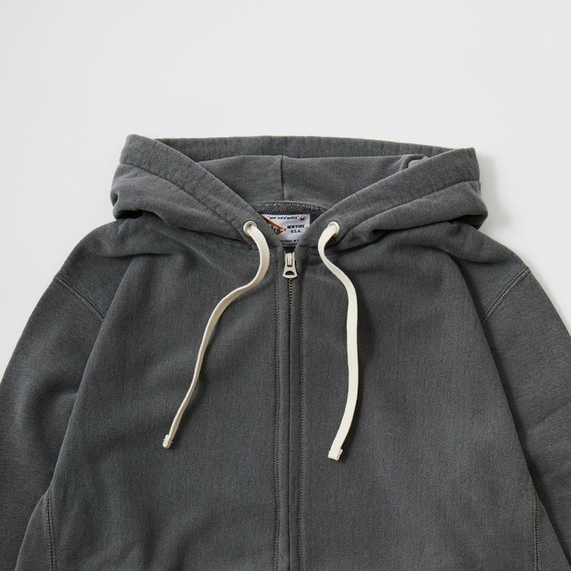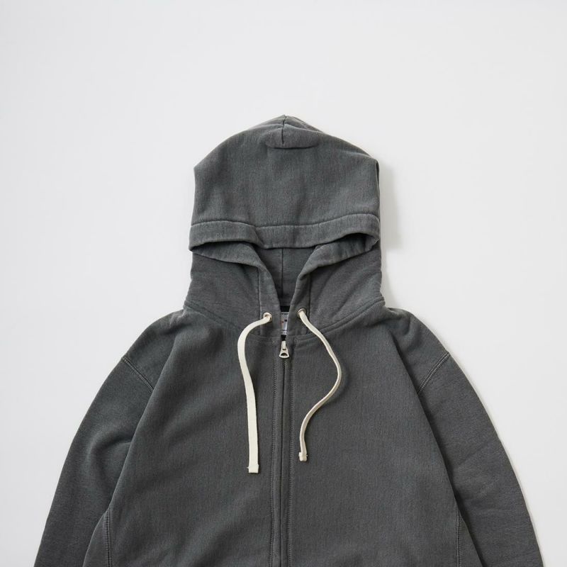 ピグメント加工 クラシックフィット インバースウィーブ ジップパーカー カンガルーポケット 日本製