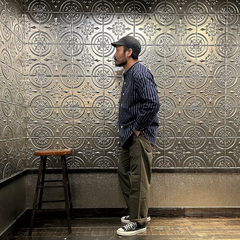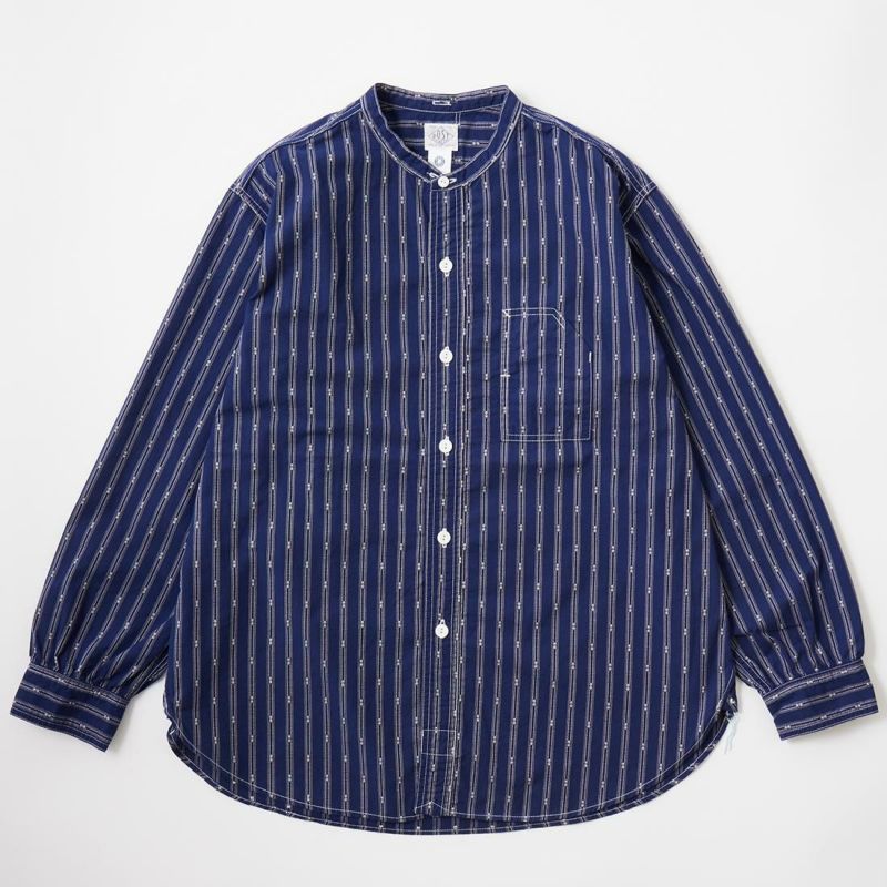 バンドカラーシャツ MV ストライプ シーチング 日本製