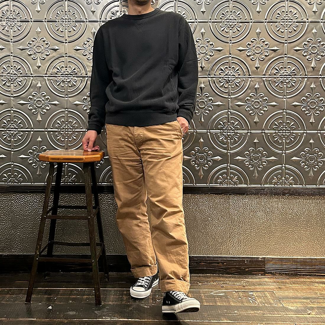 他の画像を見る メンズ 16オンス クラシックフィット スウェット クルーネック 無地 日本製 FELCO (フェルコ) 16oz TERRY CLASSIC FIT INVERSE WEAVE DOUBLE V GUSSET SET IN CREW SWEAT W/SLASH POCKET - VINTAGE WASH BLACK ¥ 19,800 税込 × 在庫切れ お気に入りに登録する