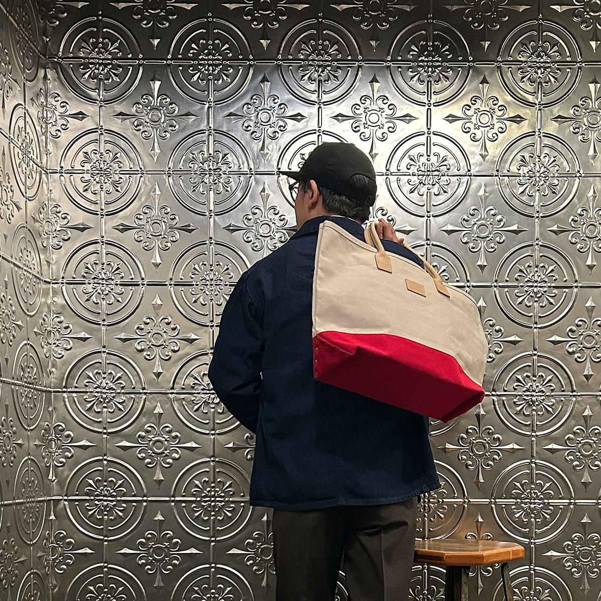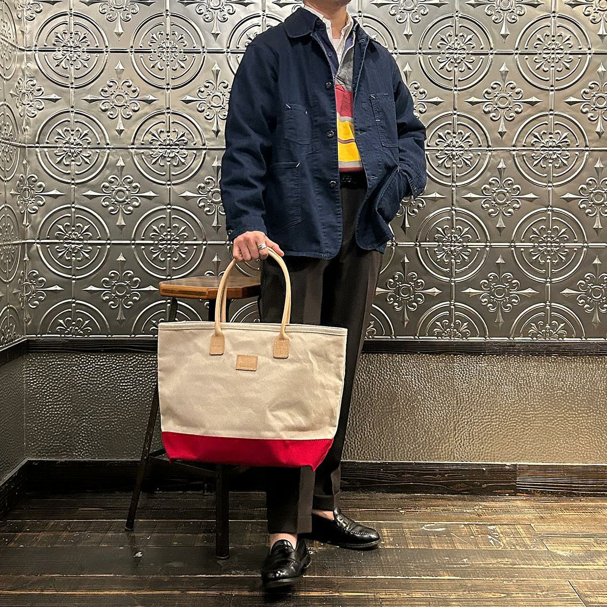 他の画像を見る キャンバス ボトム デイトートバッグ メンズ アメリカ製 HERITAGE LEATHER (ヘリテイジレザー) CANVAS BOTTOM DAY TOTE - NATURAL RED CANVAS 販売価格 ¥ 24,200 税込 × 在庫切れ お気に入りに登録する