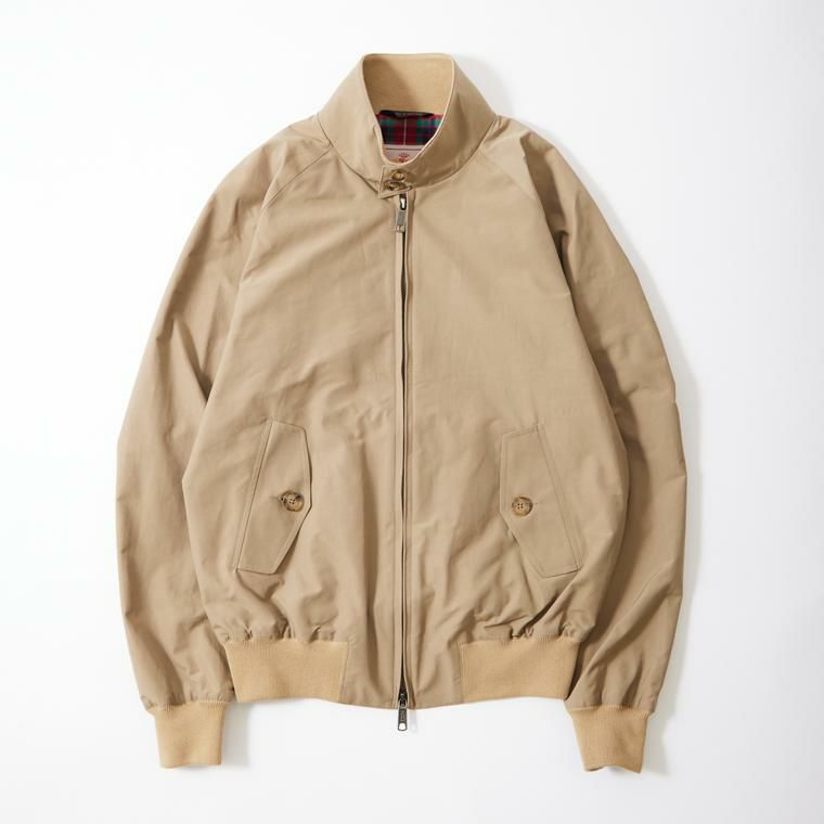 イギリス発「BARACUTA(バラクータ)」のG-9 ORIGINAL 。ハリントンジャケットの原型と言われる大定番のG-9ジャケット。そのG-9を現代的にアップデートしたモデルです。ハリのあるコットンポプリンの表地、クールマックス素材を用いたタータンチェックの裏地など、現代の生地を使用して当時の雰囲気を再現。サイズ感も一新されていて、全体的にスリムシルエットに仕上げられています。袖口部分と裾部分はニットリブ仕様、背面にはアンブレラヨークを採用しています。袖はラグランスリーブ、フロントジップはダブルジップ仕様。