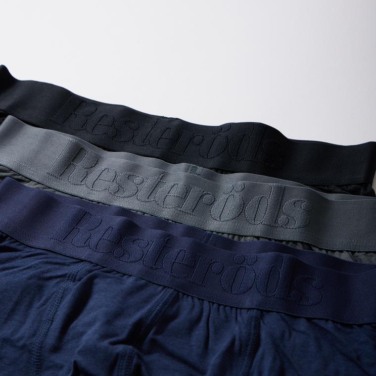 スウェーデン発「RESTERODS(レステロッズ)」の ボクサーパンツ。こちらはバンブーコットンを使用したボクサーパンツが3枚セットになった3PACKタイプ。バンブーコットンはとても滑らかで清涼感のある肌触りで、定番の生地よりも更に快適な穿き心地を実現しています。デザインは定番のGUNNARと同様で、ウェストにはブランドネーム入りの太目のリブを使用しています。