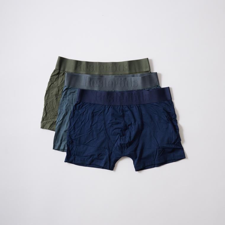 スウェーデン発「RESTERODS(レステロッズ)」の ボクサーパンツ。こちらはバンブーコットンを使用したボクサーパンツが3枚セットになった3PACKタイプ。バンブーコットンはとても滑らかで清涼感のある肌触りで、定番の生地よりも更に快適な穿き心地を実現しています。デザインは定番のGUNNARと同様で、ウェストにはブランドネーム入りの太目のリブを使用しています。