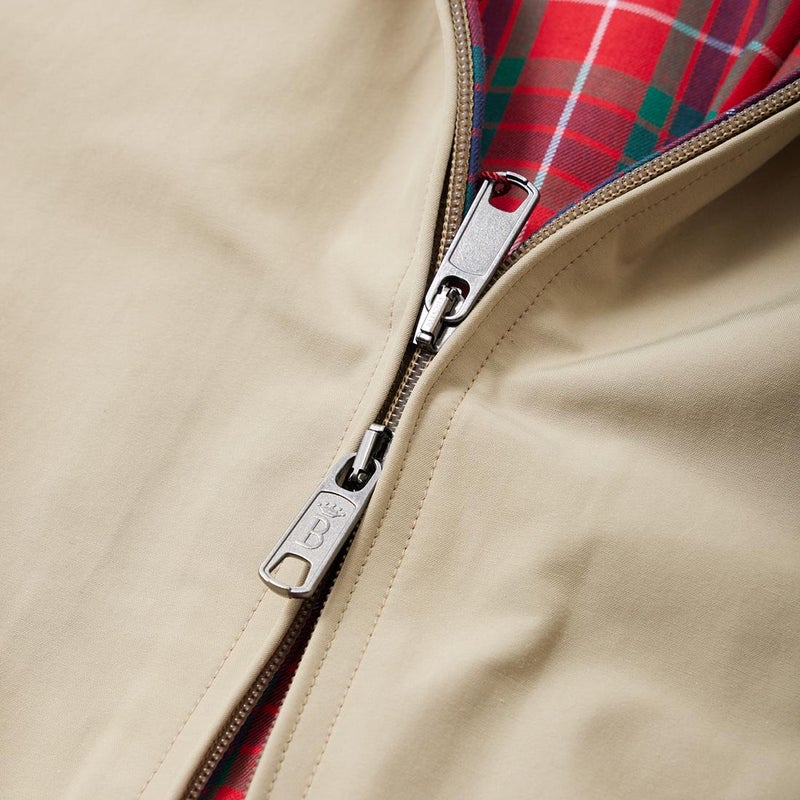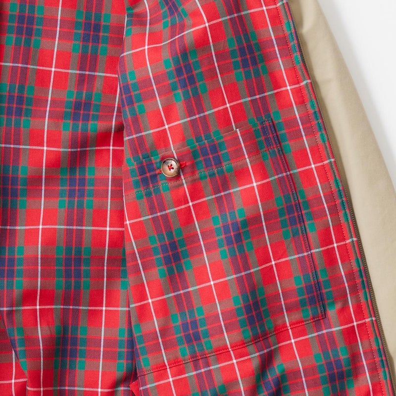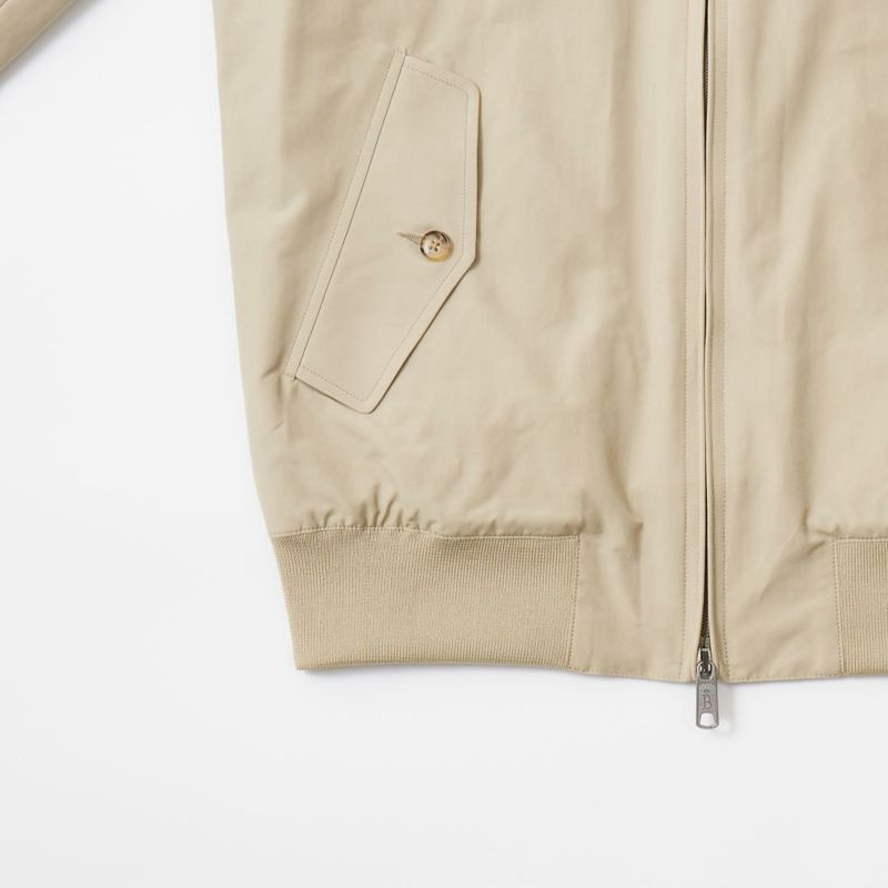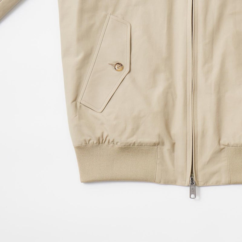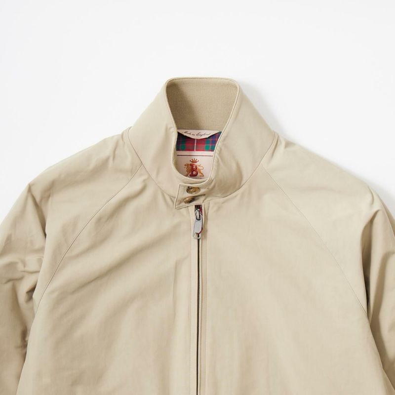 BARACUTA(バラクータ)のG9 ARCHIVE AUTHENTIC FIT。ハリントンジャケットの原型と言われる大定番のG-9ジャケット。ハリのあるコットンポプリンの表地、クールマックス素材を用いたタータンチェックの裏地など、現代の生地を使用。ややゆったりとした1950年代のフィットを復刻したG9 アーカイブ オーセンティックフィット。現行のレギュラーフィットのG9よりも着丈がやや長く、身幅やアームホールもやや大きめの作りで全体的にややゆったりとしたシルエット。袖口部分と裾部分はニットリブ仕様、背面にはアンブレラヨークを採用しています。袖はラグランスリーブ、フロントジップはダブルジップ仕様。こちらのモデルにはサイドのフラップ付きポケットにBARACUTA(バラクータ)のピスネームが付きます。