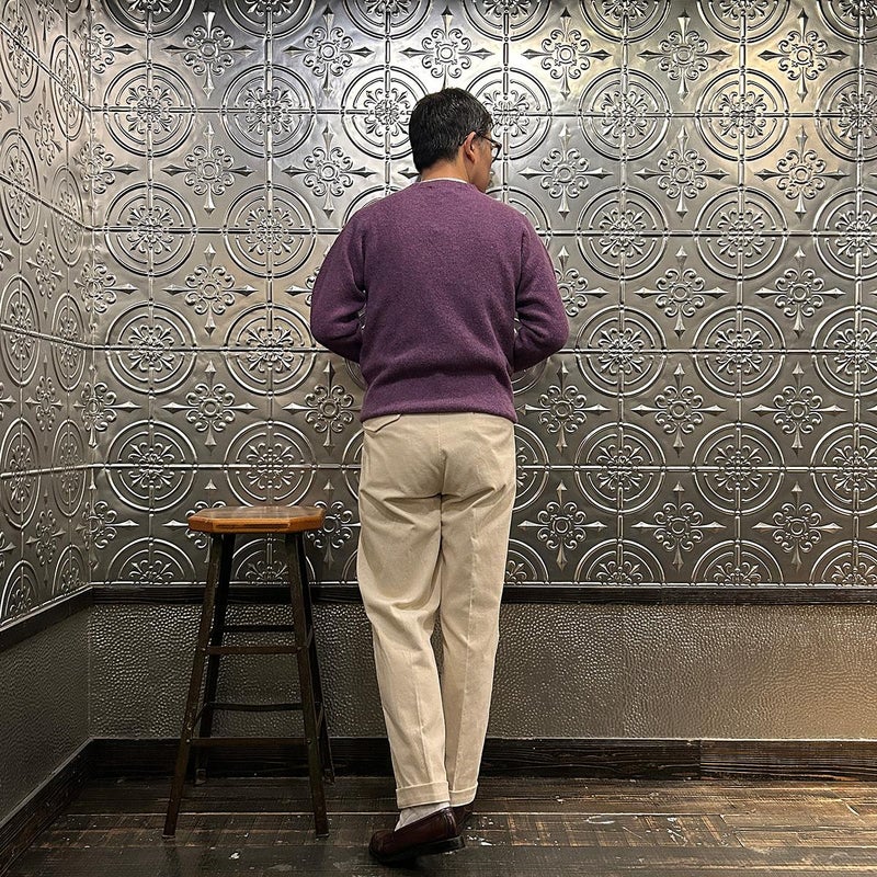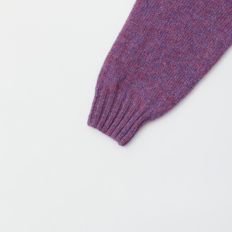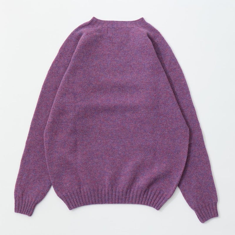 確かなクオリティとインポートブランドながらもコストパフォーマンスに優れたアイテムを数多くリリースするHARLEY OF SCOTLAND(ハーレーオブスコットランド)。縫い目のない一つ凪で作られるシームレス製法が特徴。ウールの温かみが感じられるミドルゲージの編地。こちらは着丈、袖丈を2.5センチ程度長く変更してもらった別注モデルになります。